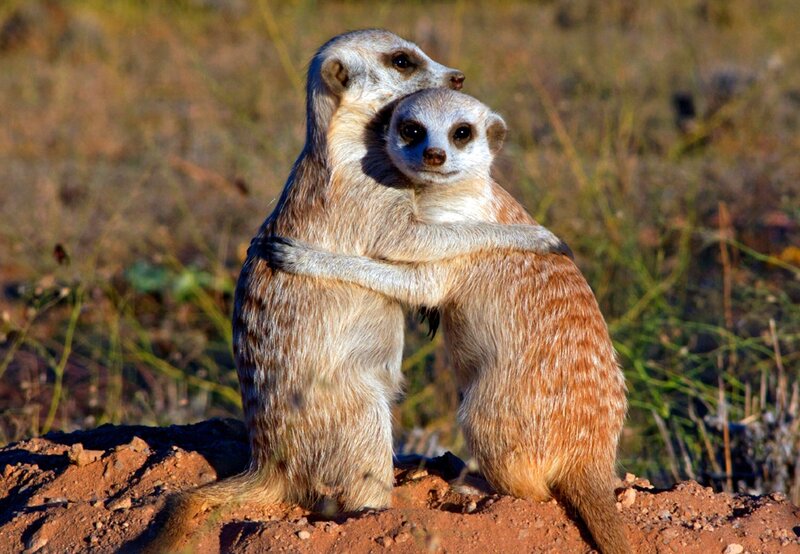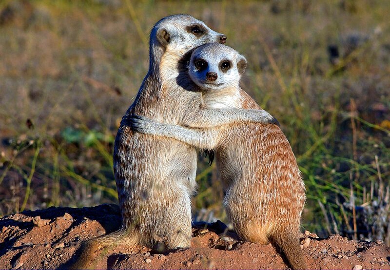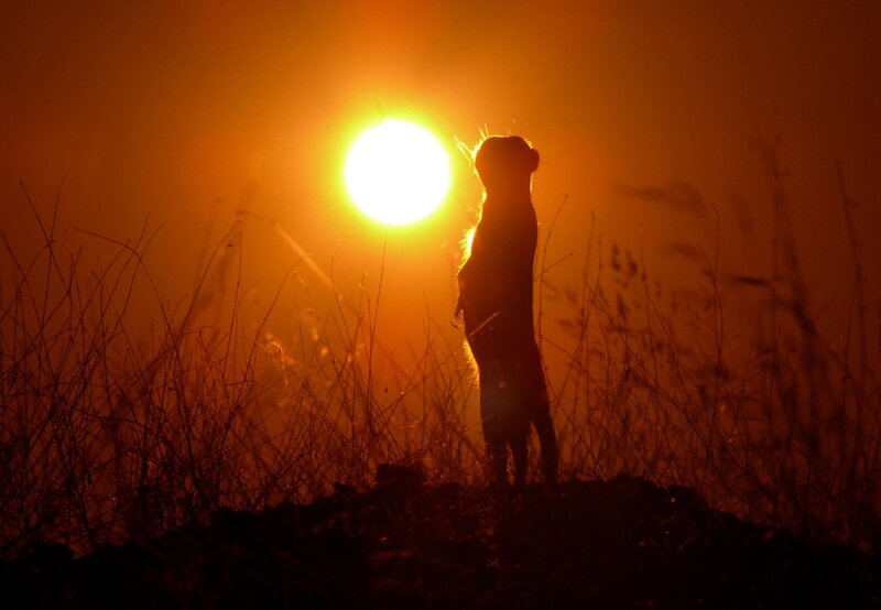 Erdmännchen sind Sonnenanbeter. In den Abendstunden tanken sie ein letztes Mal Wärme bevor sie in ihren Bauen verschwinden um die kalten Nachtstunden zu verschlafen.