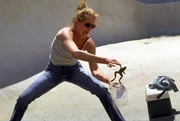 Während ihr neuer Nachbar, der Harley-Davidson-Freak George (Aaron Eckhart), auf die Kinder aufpasst, begibt sich Erin Brockovich (Julia Roberts) auf Sherlock Holmes Spuren.Bild: © RTL Zwei