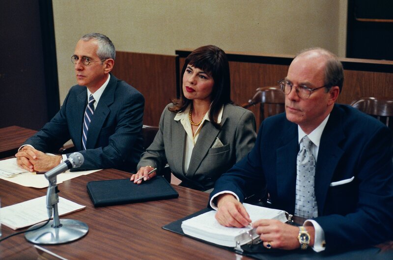Müssen sich warm anziehen: Ms. Sanchez (Gina Gallego, M.) die Repräsentative und die Anwälte von PG&E (Michael Shamberg, l. und Don Snell, r.) ...Bild: © ProSiebenSat.1 Media SE