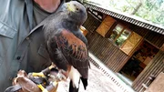 Besonderheit an der Habichtswaldsteig-Wanderstrecke: Begegnungen mit Greifvögeln am Edersee. Im Bild ein Wüstenbussard.Bild: © HR/Karin Kedem