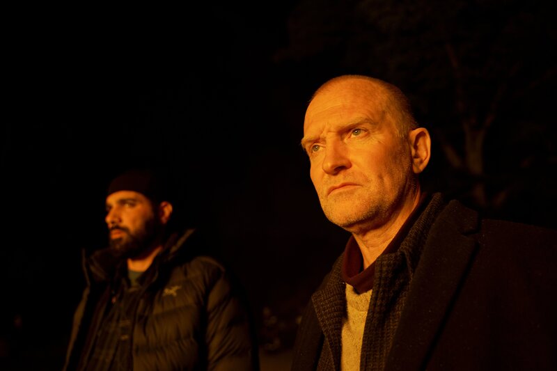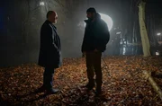 Der Kopenhagener Ermittler Carl Mørck (Ulrich Thomsen, l.) befragt seinen Kollegen Assad (Zaki Yousef, r.) im Wald, wo sie den rumänischen Jungen Marco vermuten.Bild: © KLARA CVRCKOVA / ZDF