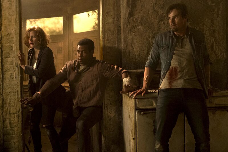 L-R: Beverly Marsh (Jessica Chastain), Mike Hanlon (Isaiah Mustafa), Ben Hanscom (Jay Ryan)Bild: © Warner Bros. Entertainment Inc.