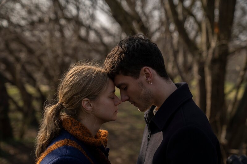 Die Sängerin Anita (Anna Søgaard Frandsen, l.) und der angehende Forscher Elias (Viktor Hjelmsø, r.) sind unsterblich verliebt, doch als sich die Klimakrise schlagartig verschärft, entscheidet sich Elias, ihre Beziehung für seine Arbeit aufzugeben.Bild: © ZDF und Morten Rygaard