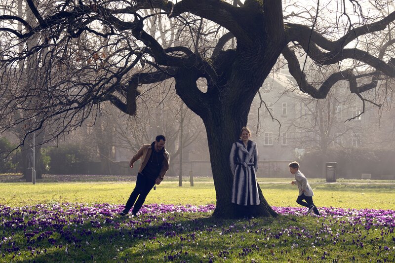 In einer übernatürlichen Vision, die von einem Riss im Erdinneren ausgeht, sieht Elias (Simon Sears), wie ein gemeinsames Leben mit Anita (Nanna Øland Fabricius) und mit einem Kind (Komparse) für ihn ausgesehen hätte.Bild: © ZDF und Morten Rygaard