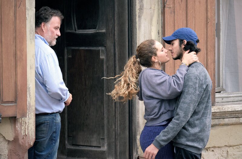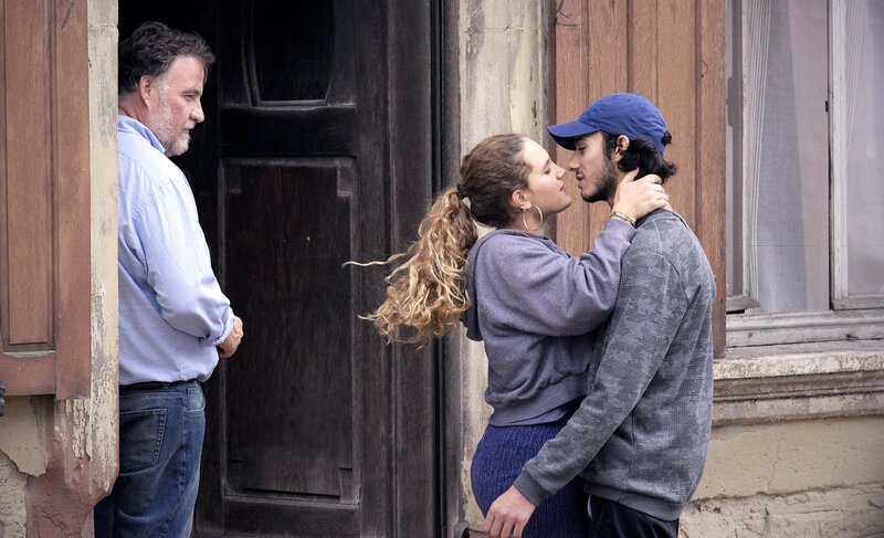 Niki Massina (2.v.l., Sarah Henochsberg) und ihr Freund Nazim (r, Lorenzo Demanget) küssen sich mehrmals vor den Augen des Vaters Mario (Bouli Lanners).; WDR Fernsehen C'EST CA L'AMOUR, am Donnerstag (10.10.24) um 23:30 Uhr. Niki Massina (2.v.l., Sarah Henochsberg) und ihr Freund Nazim (r, Lorenzo Demanget) küssen sich mehrmals vor den Augen des Vaters Mario (Bouli Lanners). © WDR/Indie Sales, honorarfrei - Verwendung gemäß der AGB im engen inhaltlichen, redaktionellen Zusammenhang mit genannter WDR-Sendung bei Nennung "Bild: WDR/Indie Sales" (S2+). WDR Kommunikation/Redaktion Bild, Köln, Tel: 0221/220 -7132 oder -7133, Fax: -777132, bildkommunikation@wdr.deBild: © WDR/Indie Sales