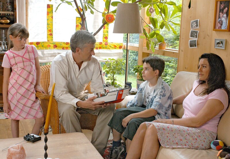 Der Arzt Dr. Kampwirth (Dominic Raacke) versteht sich gut mit Evas (Christine Neubauer) Kindern Martin (Patrick Kostya) und Laura (Janina Meißner).Bild: © ARD Degeto/Katrin Knoke