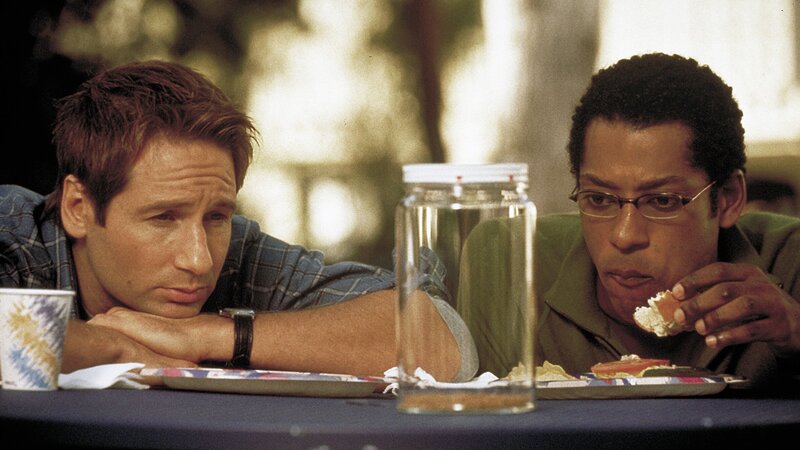 Die Wissenschaftler Ira Kane (David Duchovny, li.) und Harry Block (Orlando Jones, re.) beobachten die seltsame Lebensform..Bild: © RTL II