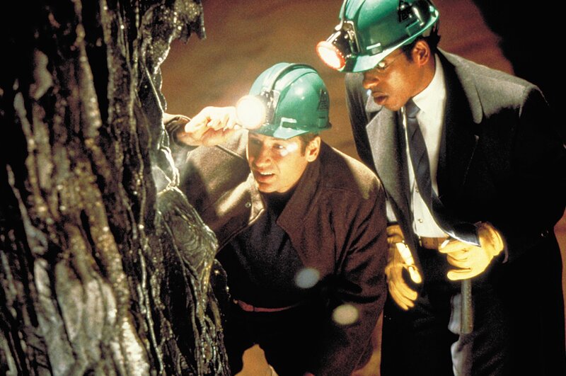 Als der Wissenschaftler Dr. Ira Kane (David Duchovny, r.) und sein Kollege Dr. Harry Block (Orlando Jones, M.) einen abgestürzten Meteoriten untersuchen, entpuppt sich dieser als Träger einer außerirdischen Lebensform. Im Gegensatz zur Evolution des Menschen entwickelt sich jedoch die Alien-Paste rasant schnell ...Bild: © DreamWorks L.L.C.