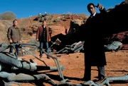 (V.l.) Wayne (Seann William Scott), Harry (Orlando Jones) und Ira (David Duchovny) finden verstorbene Flugdinosauerier vor. Doch wie sind sie ins Tal gekommen?Bild: © DreamWorks L.L.C.