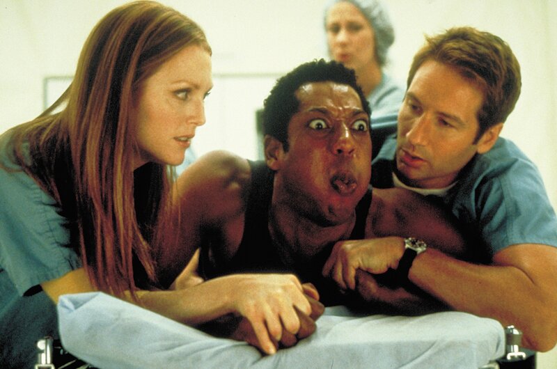 Zusammen mit der Alien-Forscherin Allison Reed (Julianne Moore, M.) nehmen Ira (David Duchovny, l.) und Harry (Orlando Jones, r.) den Kampf gegen die Aliens auf. Doch herkömmliche Abwehrmechanismen können die weitere Verbreitung der Mutanten nicht stoppen ...Bild: © DreamWorks L.L.C.