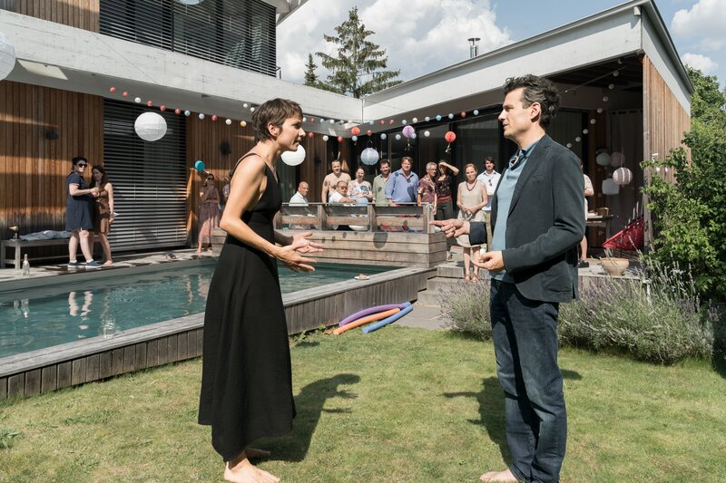 Judith (Julia Koschitz, l.) macht Hannes (Manuel Rubey, r.) auf ihrer Geburtstagsparty eine Szene, weil sie ihn nicht eingeladen hatte und er trotzdem gekommen ist.