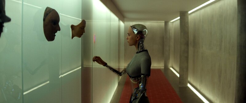 Der junge Programmierer Caleb erhält die Möglichkeit, an einem streng geheimen Experiment teilzunehmen, das sich mit künstlicher Intelligenz beschäftigt. Das Forschungsobjekt ist der weibliche Android Ava, zu dem er eine verhängnisvolle Beziehung aufbaut. Alex Garland gelingt mit dem Sci-Fi-Thriller ein packendes Regiedebüt. Caleb Smith (Domhnall Gleeson) arbeitet als Programmierer bei der weltweit erfolgreichen Internet-Suchmaschine "Blue Book". Durch ein firmeninternes Gewinnspiel erhält er die Möglichkeit, dem Firmengründer Nathan Bates (Oscar Isaac) bei seiner Arbeit an einer neuen Entwicklung über die Schulter zu schauen. Hierzu fliegt er in die Einsamkeit Alaskas, um eine Woche mit dem Programmiergenie in dessen abgeschotteter Villa zu verbringen. Dort arbeitet Nathan an einem weiblichen Androiden, der mit künstlicher Intelligenz ausgestattet ist. Caleb soll Teil eines Experiments werden, bei dem er das hübsche Robotermädchen Ava (Alicia Vikander) auf seine Überzeugungskraft als menschliches Wesen testet. Während seiner Gespräche mit dem Forschungsobjekt wird er über Kameras von Nathan beobachtet, dessen Exzentrik und dessen Alkoholproblem Caleb zunehmend unangenehm werden. Auch der Umgang Nathans mit seiner Dienerin, der Asiatin Kyoto (Sonoya Mizuno), wirkt befremdlich auf Caleb. Umso näher fühlt sich der schüchterne Programmierer Ava, die sich scheinbar zu seiner Verbündeten entwickelt. Doch dann gerät das Experiment außer Kontrolle, und Caleb wird zum Spielball im Kampf zwischen Mensch und Maschine.