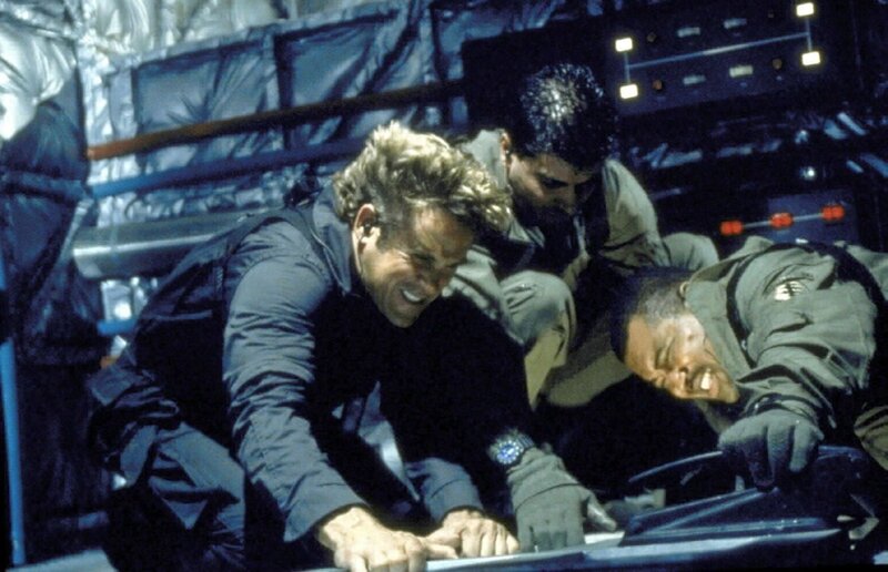 Ein Spezialteam der Air Force, darunter der Chemie-Experte Rick Harding (Michael Dudikoff), dringt mit Hilfe eines Shuttles in die Maschine ein und versucht, es mit den Bösewichtern aufzunehmen.Bild: © RRS