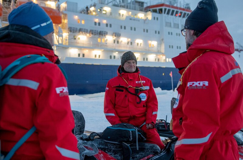 Es ist die größte Arktis-Expedition aller Zeiten: Im September 2019 macht sich der deutsche Eisbrecher "Polarstern" auf den Weg und driftet eingefroren für ein Jahr durch die Eiswüste nahe des Nordpols. An Bord: die besten Wissenschaftler ihrer Generation. Ihre Aufgabe: Daten sammeln – über den Ozean, das Eis und die Atmosphäre. Die Mission: den Klimawandel verstehen. Die Corona-Pandemie stellt die Crew vor zusätzliche Herausforderungen.Der Dokumentarfilm liefert eine spektakuläre Nahaufnahme der "MOSAiC"-Expedition des Alfred-Wegener-Instituts, Helmholtz-Zentrum für Polar- und Meeresforschung (AWI). Er wird produziert von der UFA Show & Factual in Kooperation mit dem rbb, NDR und HR für Das Erste. - Expeditionleiter Markus Rex (Mitte) bespricht mit Co-Koordinator Matthew Shupe (re.) in den ersten Tagen auf der Eisscholle den Aufbau des Forschungscamps.