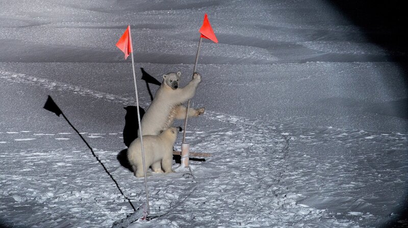 Es ist die größte Arktis-Expedition aller Zeiten: Im September 2019 macht sich der deutsche Eisbrecher "Polarstern" auf den Weg und driftet eingefroren für ein Jahr durch die Eiswüste nahe des Nordpols. An Bord: die besten Wissenschaftler ihrer Generation. Ihre Aufgabe: Daten sammeln – über den Ozean, das Eis und die Atmosphäre. Die Mission: den Klimawandel verstehen. Die Corona-Pandemie stellt die Crew vor zusätzliche Herausforderungen. Der Dokumentarfilm liefert eine spektakuläre Nahaufnahme der "MOSAiC"-Expedition des Alfred-Wegener-Instituts, Helmholtz-Zentrum für Polar- und Meeresforschung (AWI). Er wird produziert von der UFA Show & Factual in Kooperation mit dem rbb, NDR und HR für Das Erste. - Voller Neugier begutachten eine Bärin und ihr etwa sechs Monate altes Junges das Forschungscamp.