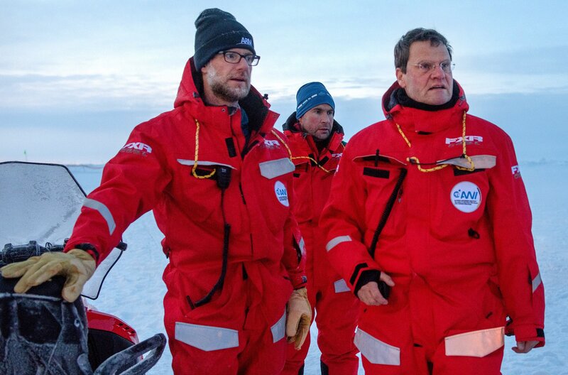 Es ist die größte Arktis-Expedition aller Zeiten: Im September 2019 macht sich der deutsche Eisbrecher "Polarstern" auf den Weg und driftet eingefroren für ein Jahr durch die Eiswüste nahe des Nordpols. An Bord: die besten Wissenschaftler ihrer Generation. Ihre Aufgabe: Daten sammeln – über den Ozean, das Eis und die Atmosphäre. Die Mission: den Klimawandel verstehen. Die Corona-Pandemie stellt die Crew vor zusätzliche Herausforderungen.Der Dokumentarfilm liefert eine spektakuläre Nahaufnahme der "MOSAiC"-Expedition des Alfred-Wegener-Instituts, Helmholtz-Zentrum für Polar- und Meeresforschung (AWI). Er wird produziert von der UFA Show & Factual in Kooperation mit dem rbb, NDR und HR für Das Erste. - v.l.n.r.: Co-Koordinator Matthew Shupe, Co-Fahrtleiter Marcel Nicolaus und Expeditionsleiter Markus Rex beraten sich über den Aufbau des Forschungscamps.