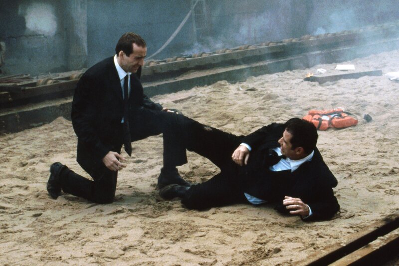 Der Leiter der Anti-Terror-Einheit, Sean Archer (John Travolta, r.), und der Terrorist Castor Troy (Nicolas Cage) haben eine gemeinsame Geschichte. Bei einem früheren Mordanschlag Troys auf Archer musste Archers junger Sohn sein Leben lassen.Bild: © Turner / PARAMOUNT PICTURES