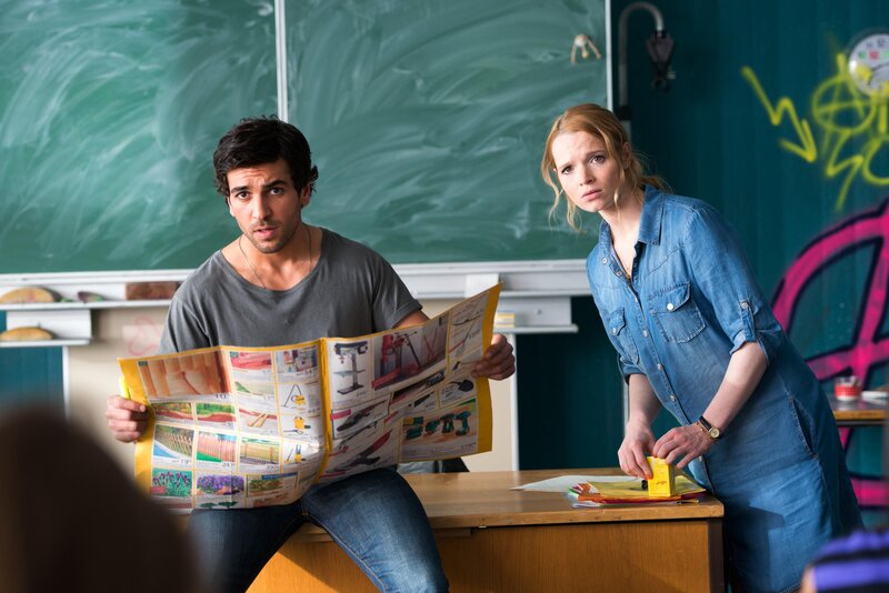 Während Zeki (Elyas M'Barek, l.) null Bock auf Schule, Schüler und Unterrichtgeben hat, nimmt Referendarin Lisi Schnabelstedt (Karoline Herfurth, r.) ihren Job sehr ernst - obwohl sie von den Schülern gar nicht ernst genommen wird ...Bild: © © 2013 Constantin Film Verleih / Christoph Assmann / Christoph Assmann