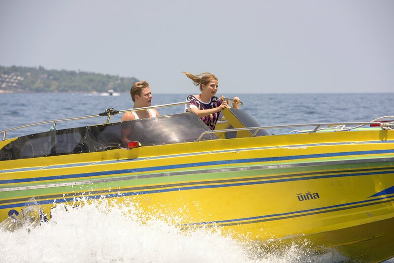 Als Danger (Max von der Groeben, l.) und Chantal (Jella Haase, r.) erfahren, warum ihr Lehrer wirklich mit ihnen nach Thailand geflogen ist, sind sie sauer und versuchen, mit den gefundenen Diamanten abzuhauen ...Bild: © Constantin Film Verleih GmbH / Christoph Assmann