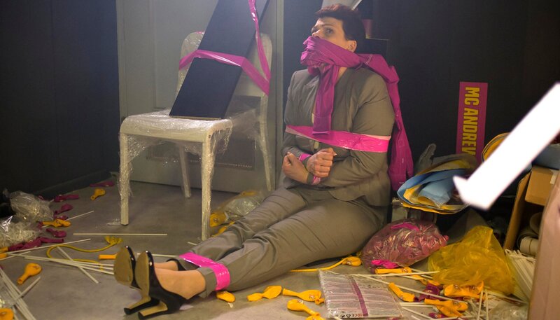 Konzernchefin Brenda (Gayle Tufts) hat sich die Eröffnung ihres 999. Elektromarktes anders vorgestellt.Bild: © ARD Degeto/Dennis Pauls