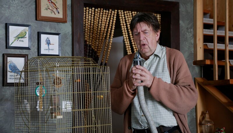 Hubert Lotzmann (Jörg Gudzuhn) hofft auf einen Piep von „Herrn Neumann“, dem geliebten Wellensittich seiner Frau.Bild: © ARD Degeto/Dennis Pauls