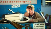 Ihm bleibt nichts erspart: Verzweifelt versucht Hubert Lotzmann (Jörg Gudzuhn), „Herrn Neumann“ zu retten, den er versehentlich mit dem Staubsauger aufgesaugt hat.Bild: © ARD Degeto/Dennis Pauls