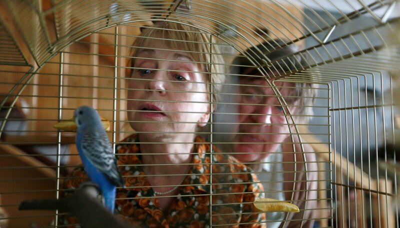 Annemarie (Gisela Schneeberger) und ihr Liebling, der Wellensittich „Herr Neumann“.Bild: © ARD Degeto/Dennis Pauls