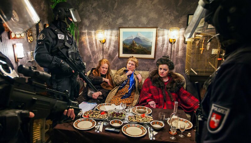 Das Einsatzkommando rückt an: Annemarie (Gisela Schneeberger) mit ihren Schwestern Ingeborg (Sigrid Schnegelsiepen-Sengül, re.) und Margot (Gudrun Ritter, li.).Bild: © ARD Degeto/Dennis Pauls