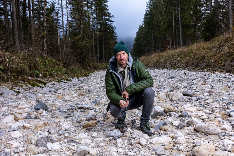 Felix Neureuther in der Ramsau (Berchtesgaden) bei Dreharbeiten rund um die Ramsauer Ache.Bild: © Valerio Agolino / BR / BR/Valerio Agolino