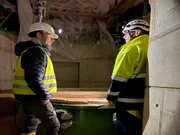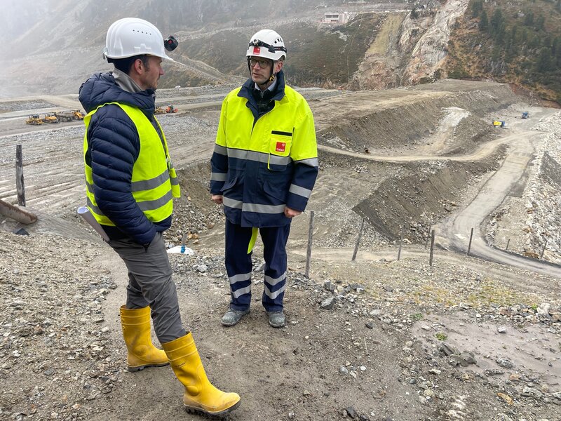 Kühtai - Felix Neureuther (links) und Klaus Feistmantl (Projektleiter, Tiwag) auf der höchstgelegensten Kraftwerksbaustelle in Mitteleuropa.Bild: © BR / Nick Golüke