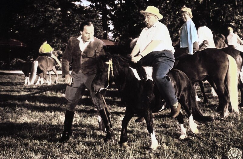 4. Mit dem wohlbeleibten Ottokar (Herbert Kiper) hat das Pony ganz schön zu tun. Jochen (Paul Klinger, li.) gibt acht, dass er nicht hinunterfällt.Bild: © ZDF/Taurus - Film, München