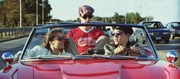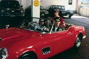 Unterwegs in Papas Ferrari machen sich die drei Schulschwänzer Ferris (Matthew Broderick, M.), Sloane (Mia Sara, l.) und Cameron (Alan Ruck, r.) einen schönen Tag ...