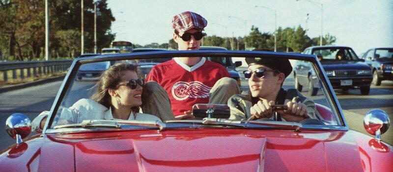 Der notorische Schulschwänzer Ferris (Matthew Broderick, M.) kann seine Freundin Sloane (Mia Sara, r.) und seinen besten Freund Cameron (Alan Ruck, l.) überreden, in dessen Vaters Ferrari nach Chicago zu brausen ...