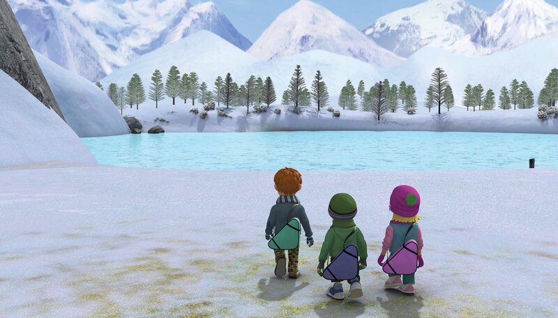 Norman, James und Sarah haben den zugefrorenen See entdeckt.Bild: © KiKA/2014 Prism Art & Design Limited