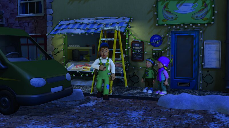 Norman bitte Mike auch das Geschäft seiner Mutter mit einer Lichterkette zu schmücken.Bild: © KiKA/2011 Prism Art & Design Limited