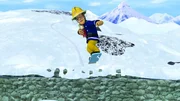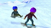 Norman und Derek fahren auf Dilys Bügelbrett Snowboard.Bild: © KiKA/2011 Prism Art & Design Limited