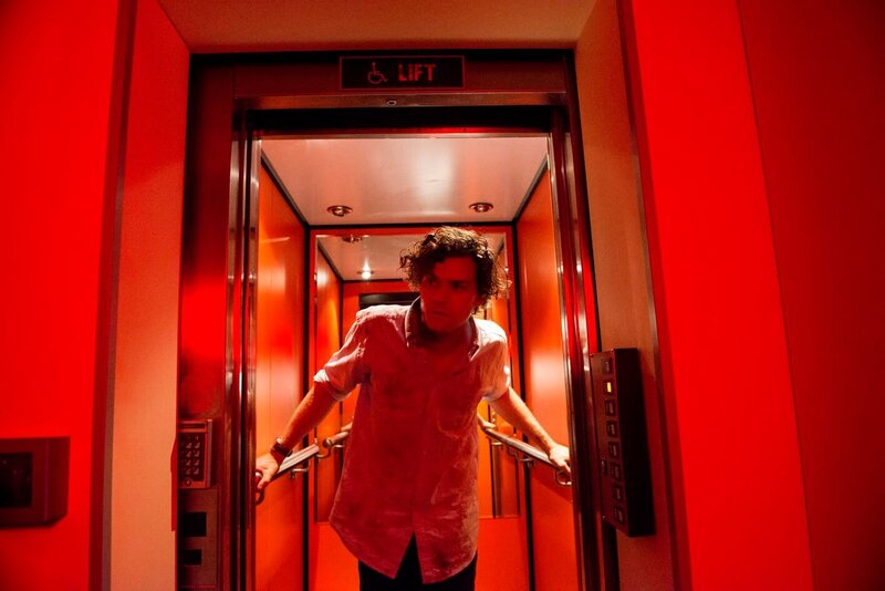 Martin (Finn Jones) und Allie (Emily Berrington), die eigentlich nur den Horrorfilm in der Spätvorstellung sehen wollten, sind mit einem perfiden Psychopathen im Kino eingeschlossen.Bild: © MDR/Tiberius Film