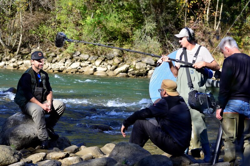 Dreharbeiten mit Fischer, Möll .Bild: © ORF/Kärntner Fischereivereinigung