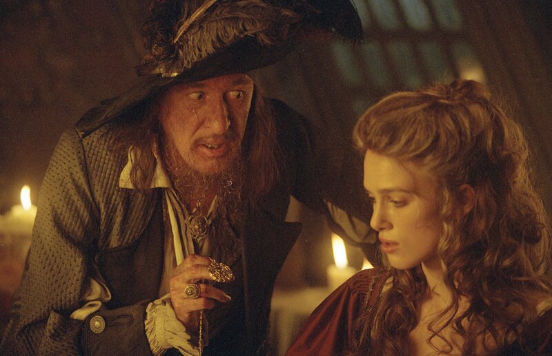 Der Raub eines verfluchten Azteken-Schatzes zwingt den berüchtigten Captain Barbossa (Geoffrey Rush, l.), als Untoter auf den Meeren zu rauben und zu plündern. Nur die Rückgabe aller Medaillons aus dem Schatz und ein Blutopfer kann ihn und seine Crew von dem Fluch erlösen. Das letzte noch verbleibende Medaillon befindet sich allerdings im Besitz von Elizabeth (Keira Knightley, r.), die es einst unbemerkt William abgenommen hatte ...Bild: © Disney/ Jerry Bruckheimer