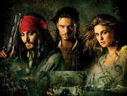 PIRATES OF THE CARIBBEAN - FLUCH DER KARIBIK 2 - Artwork: mit (v.l.n.r.) Johnny Depp, Orlando Bloom und Keira KnightleyBild: © Disney Enterprises, Inc. All rights reserved / Peter Mountain