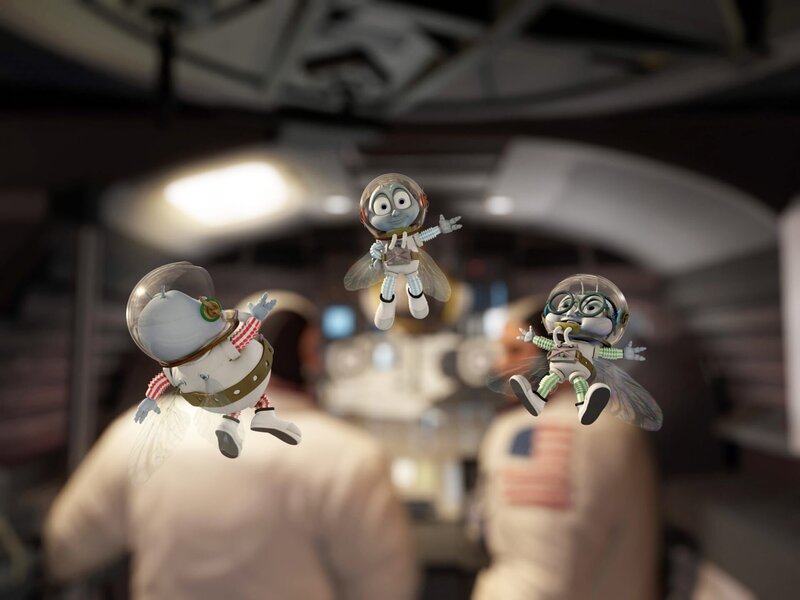 Nominiert für einen Europäischen Filmpreis Die amerikanischen Stubenfliegen Nat, IQ und Scooter träumen 1969 davon, als Flugpioniere in die Fliegengeschichte einzugehen. Als die Apollo 11 Kurs auf den Mond nimmt, verstecken sich die drei Freunde in den Helmen der Astronauten. Es dauert nicht lange, bis sie von der NASA und schließlich den Astronauten bemerkt und gejagt werden. Zudem sind auch noch russische Fliegen mit an Bord, die ihre amerikanischen Artgenossen mit allen Mitteln daran hindern wollen, die ersten Insekten auf dem Mond zu sein. Ein Animationsspaß für die gesamte Familie, bei dem drei Fliegen in der Apollo 11 ein Weltraum-Abenteuer der dritten Art erleben. Inszeniert von Ben Stassen, dem Regisseur von "Sammys Abenteuer".