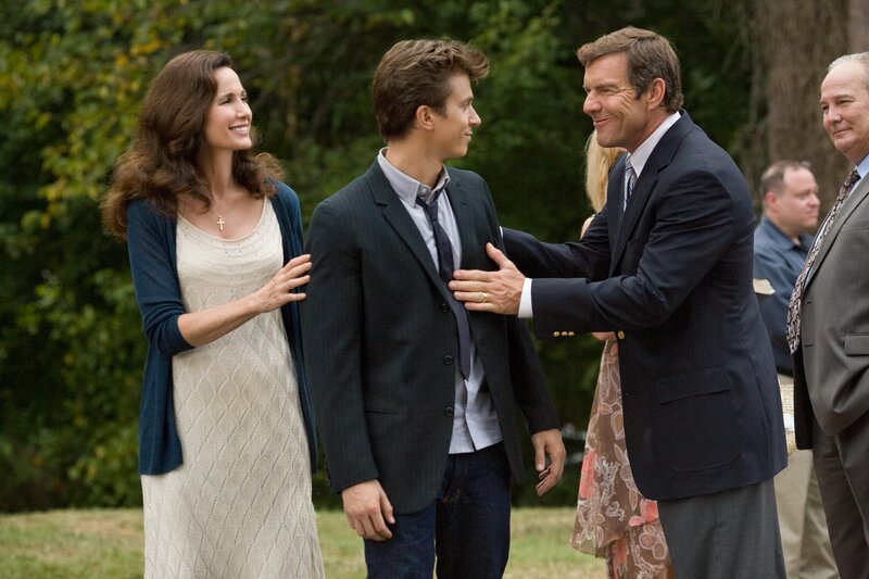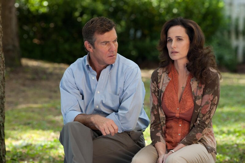 Nach dem tödlichen Autounfall seines Sohnes hat der konservative Pfarrer Shaw Moor (Dennis Quaid, l.) zahlreiche Verbote erlassen und allen voran Rockmusik, Alkohol und Tanzen als Teufelswerk aus der Stadt verbannt. Noch rebelliert seine Frau Vi (Andie MacDowell, r.) nicht gegen seine Entscheidungen ...Bild: © Paramount Pictures