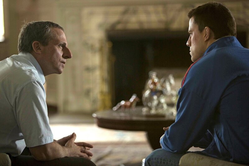 L-R: Mark Schultz (Channing Tatum), John du Pont (Steve Carell)Bild: © Fair Hill, LLC. All rights reserved. / Scott Garfield / MKNS