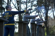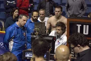 Das Team Foxcatcher bei den Olympischen Spielen 1988 in Seoul: (vorne, l-r) John du Pont (Steve Carell), David Schultz (Mark Ruffalo).Bild: © Fair Hill, LLC