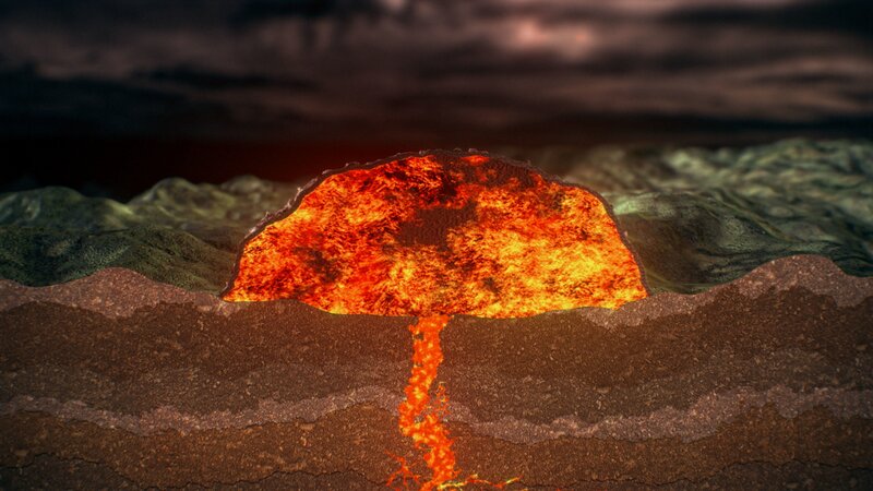Eine der Vulkanformen, die in der Chaîne des Puys vorkommt, ist der Lavadom. Sie bergen ein hohes Gefahrenpotential.Bild: © ZDF und RMC Production