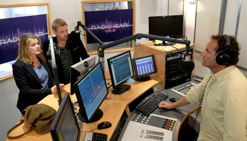 Gemeinsam starten Rieke (Birge Schade, 2 .v. li.) und Toni (Martin Gruber) in der Radiosendung von Bernd Lindner (Thomas Ohrner) eine Spendenaktion für Jessica.
