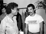 Michael Jackson (li.) besucht Freddy Mercury (re.) 1980 im Backstagebereich in Los Angeles.; Zur ARTE-Sendung Freddy Mercury Ð Sex, Drugs and Ballet Shoes 13: Michael Jackson (li.) besucht Freddy Mercury (re.) 1970 im Backstagebereich in Los Angeles. © Corbis/Neal Preston Foto: ARTE Honorarfreie Verwendung nur im Zusammenhang mit genannter Sendung und bei folgender Nennung "Bild: Sendeanstalt/Copyright". Andere Verwendungen nur nach vorheriger Absprache: ARTE-Bildredaktion, Silke Wšlk Tel.: +33 3 881 422 25, E-Mail: bildredaktion@arte.tvBild: © Corbis/Neal Preston / ARTE