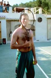 Freddie Mercury beim Tennisspielen in Spanien, 1988Bild: © Eugene Adebari/Rex Features/Mercury Studios Ltd