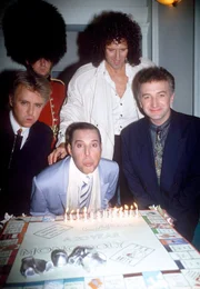 Freddy Mercury mit seiner Band auf einer Queen-Party im Groucho Club in London: Roger Taylor, Freddy Mercury, Brian May, John Deacon (v.l.); Zur ARTE-Sendung Freddy Mercury Ð Sex, Drugs and Ballet Shoes 11: Freddy Mercury mit seiner Band auf einer Queen-Party im Groucho Club in London: Roger Taylor, Freddy Mercury, Brian May, John Deacon (v.l.) © Rex Features/Richard Young Foto: ARTE Honorarfreie Verwendung nur im Zusammenhang mit genannter Sendung und bei folgender Nennung "Bild: Sendeanstalt/Copyright". Andere Verwendungen nur nach vorheriger Absprache: ARTE-Bildredaktion, Silke Wšlk Tel.: +33 3 881 422 25, E-Mail: bildredaktion@arte.tvBild: © Rex Features / Richard Young