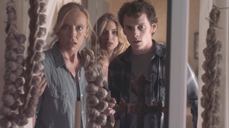 Charley (Anton Yelchin), seine Mutter Jane (Toni Collette) und Freundin Amy (Imogen Poots) verstecken sich vor ihrem neuen Nachbarn Jerry (Colin Farrell), einem blutdurstigen Vampir der Jagd auf Familie Brewster macht.Bild: © DreamWorks II Distribution Co., LLC
